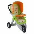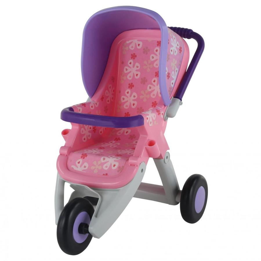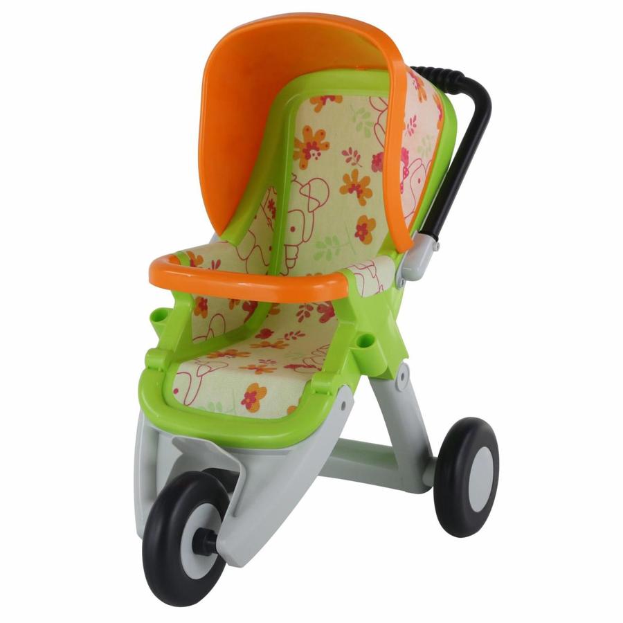 Традиционна триколесна детска количка за кукли с неплъзгащо покритие, което предпазва играчката поставена вътре от падане.