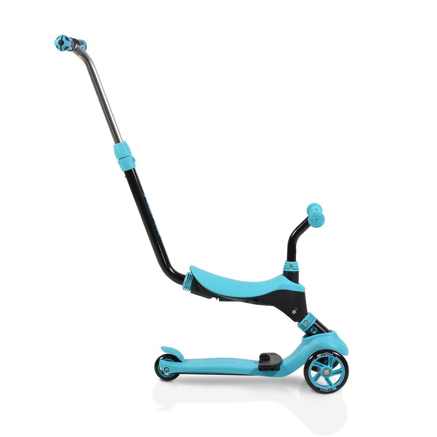 Детска тротинетка 3в1 ; Дръжка за родителски контрол с възможност за регулиране на височината; Степенки за детето , когато се направлява от родителя; Седалка за дете с тегло до 20кг; Дръжката за родителски контрол може да се монтира за функция тротинетка за по-голямо дете.