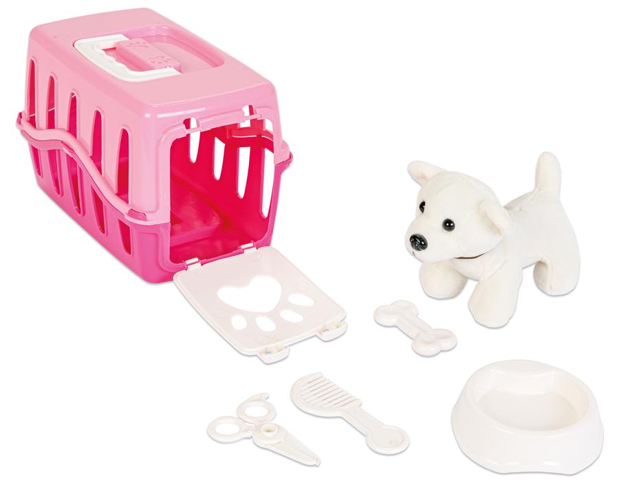 Детето Ви ще се влюби в този уникален ветеринарен комплект. Удобната клетка за пренасяне позволява да носите домашния си любимец с Вас на пазар или просто докато се разхождате. Комплектът включва 1 бр. преносима клетка, 1 бр. плюшена играчка, 1 бр. купичка за хранене, 1 бр. ножица, 1 бр. гребен и 1 бр. кучешки кокал. Изработен от бои и материали безопасни за здравето на Вашето дете. Подходящ за деца над 24 м+