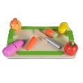 Искате Вашето дете да се забавлява от сърце, а в същото време да развива своите умения и да учи нови неща? Подарете му този изключително оригинален, цветен комплект, който се състои от дървена дъска за рязане, дървено ножче и 5 зеленчука (лук, морковче, домат, патладжан и лимонче). С помощта на дървеното ножче Вашето мъниче може да нареже хранителните продукти на няколко части върху дъската, а след това отново да съедини парчетата. Този комплект ще се превърне в любимата играчка на всеки малък готвач, който с интерес ще приготви обяд за цялото семейство. Този вид занимания помагат за развитието на фините моторни умения и координация на ръцете и очите. Също така се насърчават въображението и креативността на децата. Нека Вашият малък помощник в кухнята сготви сам своето първо ястие! Играчката е изработена от висококачествени и безопасни материали. Тя е чудесен подарък за малчугани, които обичат да прекарват времето си в забавни игри.