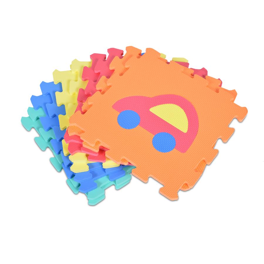 Мек пъзел превозни средства / 10 елемента. Неплъзгаща повърхност. Дебелина - 10 мм. Размер на единична плочка 32 х 32 см. Подпомага развитието на цветоусещането и фината двигателна моторика от съвсем ранна детска възраст. Изработен от мека еластична EVA пяна, с отлична топлоизолационна функция. Подходящ за деца над 10 месечна възраст.