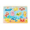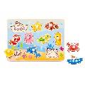 Дървена образователна дъска - морско дъно. Заоблени краища, пъстри цветове и удобни дръжки за по - лесно захващане. Подходяща за деца над 18 месечна възраст.