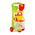 Включва удобна количка, контейнер за съхранение на листа, лейка, гребло и лопата. Изработен от бои и материали безопасни за здравето на Вашето дете.