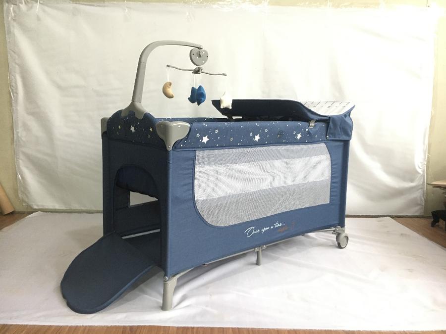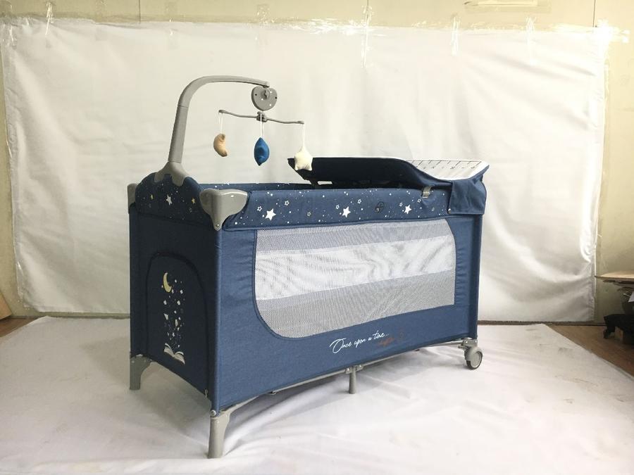 Сгъваема детска кошара; Подходяща за употреба вкуъщи и пътуване; Сгъва се лесно и компактно, заемайки минимално място; Подходяща за бебета от раждането до 14 кг.; Със 2ро ниво за спане подходящо за деца между 0 и 6 месеца; Комплектът включва и подложка за преповиване; Идеална както за сън, така и за игра; Музикален гриф в 4 играчки; Голям джоб с играчки; Страничен отвор с цип предлага на детето удобен дотъп да влезне и/или излезне по време на игра; Висококачествен ленен плат с приказни мотиви; 2 колелца, за по-лесно преместване и 2 лесно достъпни стопера; Компактно и лесно сгъване; Чанта за лесно пренасяне; Матрак подходящ за спане с дебелина 1.5см.;
