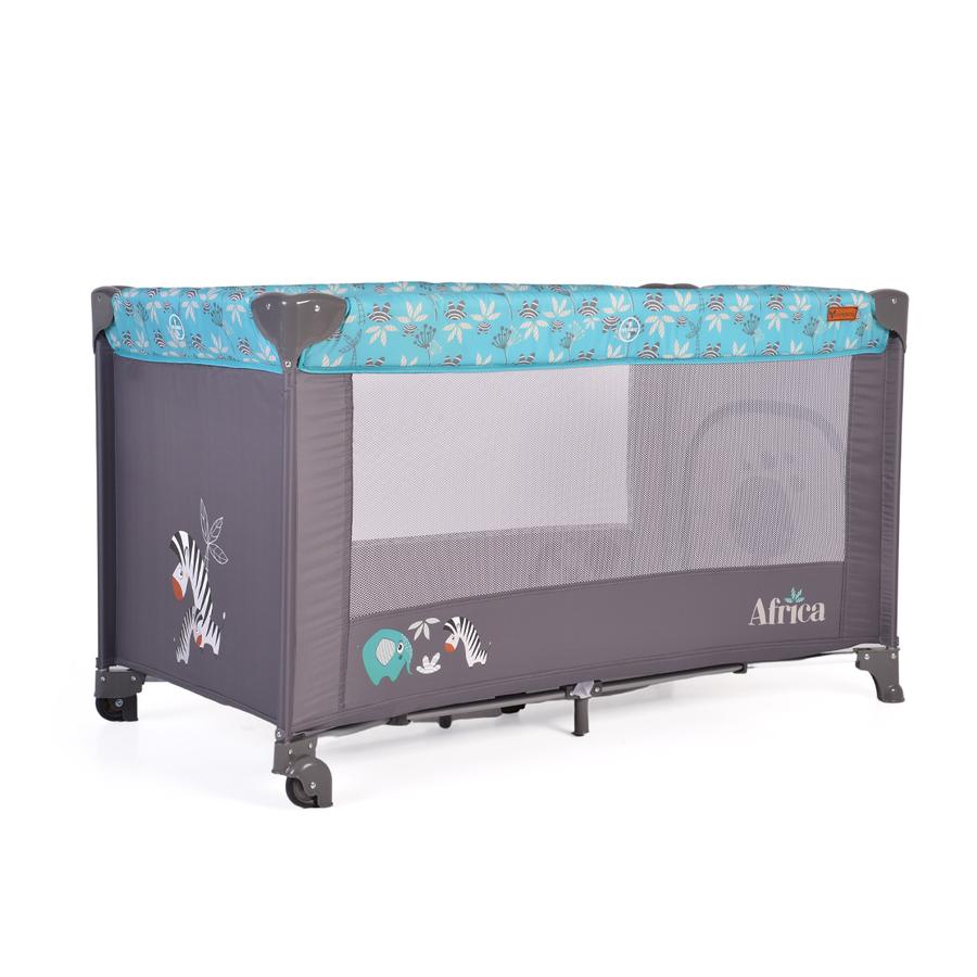 Детска кошара Africa, която се отличава с красив дизайн, функционалност, качество и гарантирано удобство. Тя е изключително компактна, заема малко място и е много лесна за пренасяне. Така че, където и да отидете, може да вземете кошарата заедно с Вас. За по-голямо удобство за родителите, към комплекта е включена и чанта за съхранение, която може да съберете в багажника на автомобила си. Бебешката кошарка е изключително удобна и в нея Вашето съкровище ще си спи сладко и непробудно. Моделът ще осигури нужния комфорт, безопасност и сигурност за детенцето. Благодарение на големите мрежови прозорци, ще може да наблюдавате бебенцето по всяко време и да бъдете спокойни, че то се чувства добре. За още по-голям комфорт на мъничето, към кошарката е включено и удобно матраче с дебелина 1,5 см.
