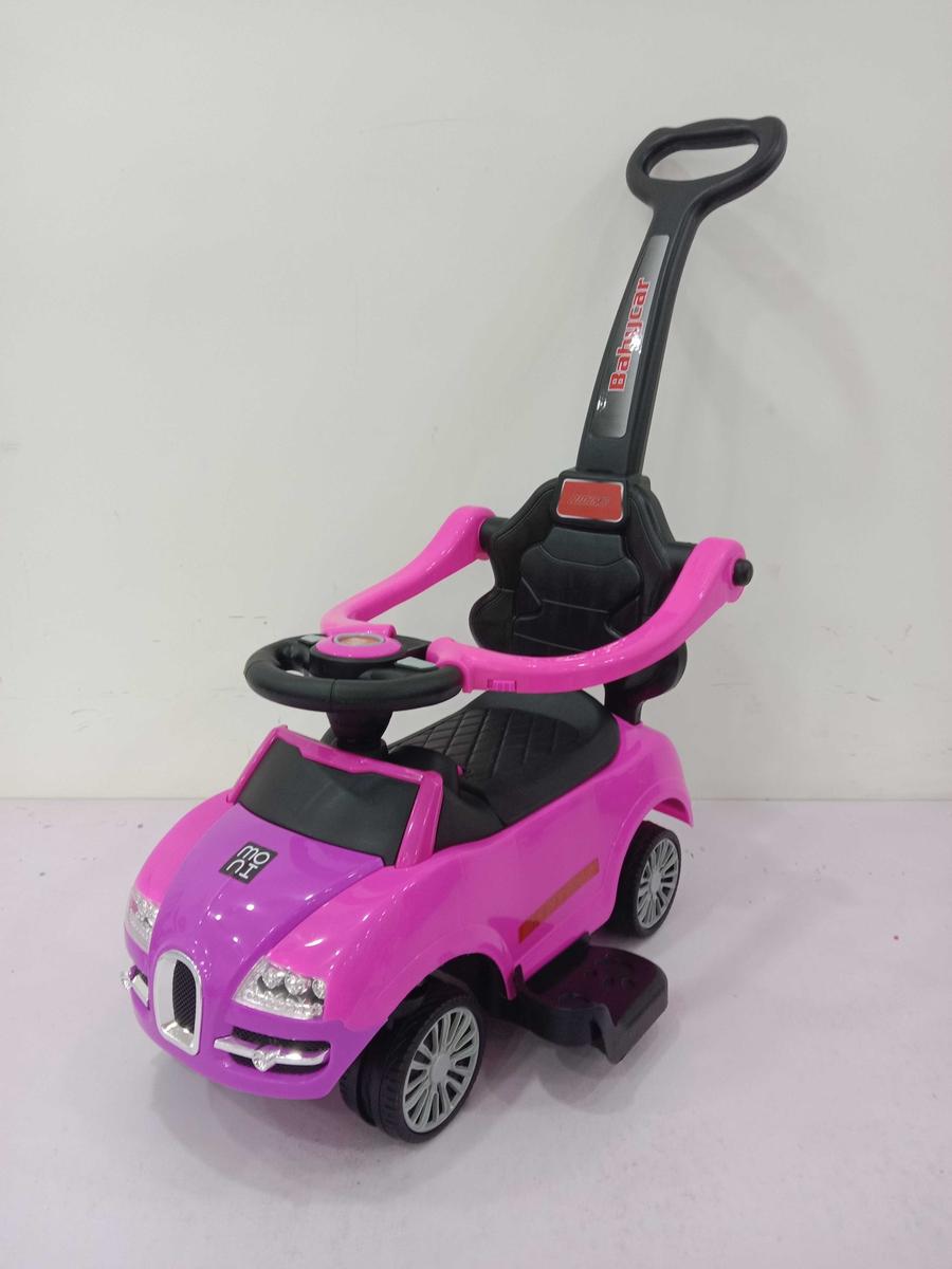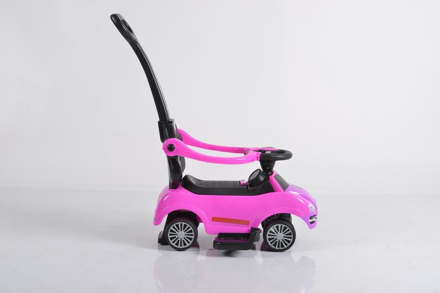 Продуктът е предназначен за деца на възраст над 24 месеца (над 2 години), като теглото на детето не трябва да надвишава 25 кг. Детската пластмасова кола за яздене е с дизайн, който допринася за развитието на моториката и баланса на детето. Тя е със сваляема дръжка за родителски контрол, сваляем преден предпазен борд и поставка за крачета за по - малки деца, удобни облегалка и седалка, под която се намира отделение за играчки. Върху волана са разположени бутони за различни забавни мелодии. Музикалните функции се активират чрез батерии 2 x АА 1.5V батерии (не са включени).