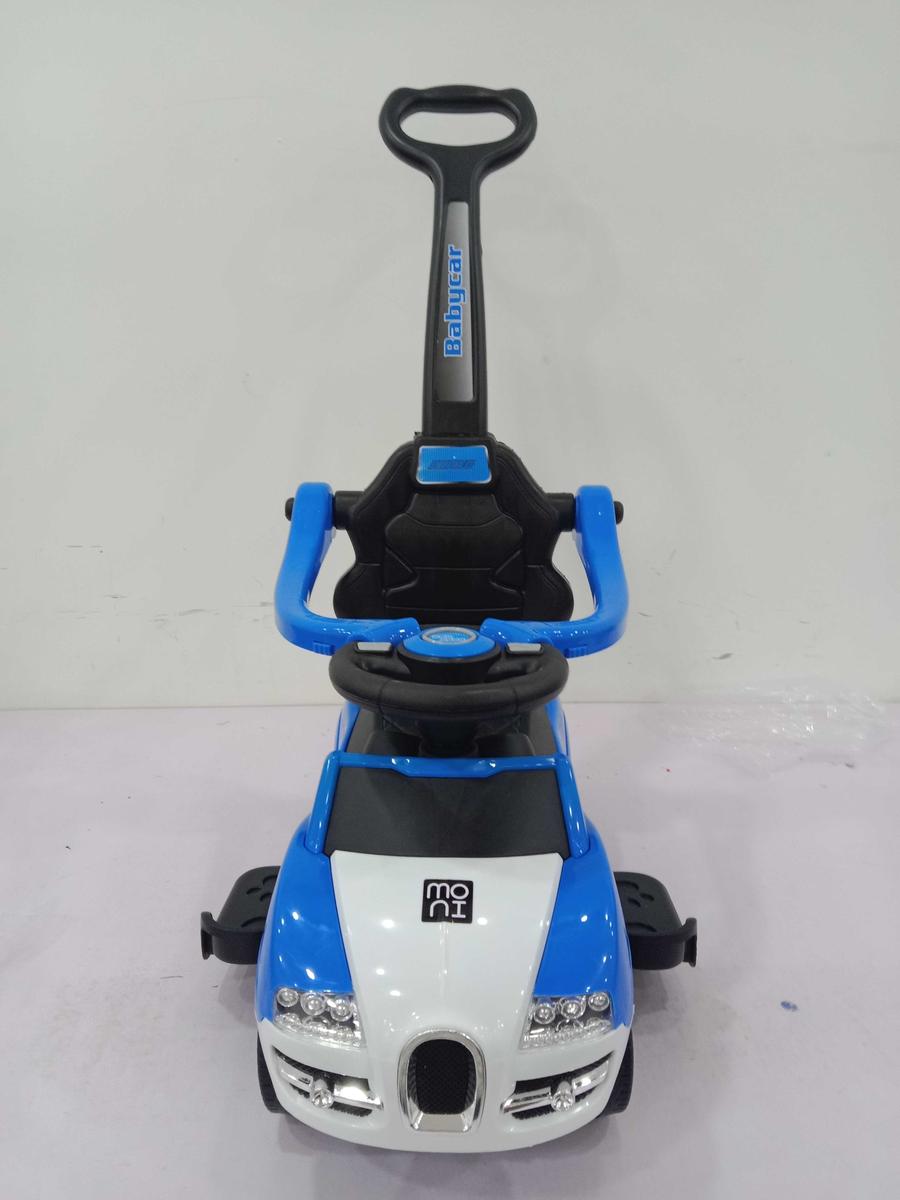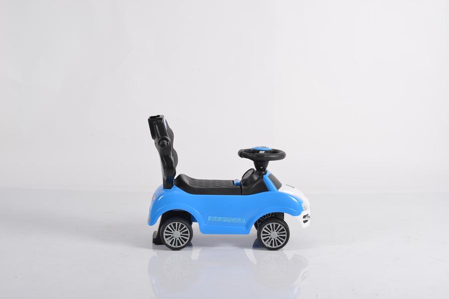Продуктът е предназначен за деца на възраст над 24 месеца (над 2 години), като теглото на детето не трябва да надвишава 25 кг. Детската пластмасова кола за яздене е с дизайн, който допринася за развитието на моториката и баланса на детето. Тя е със сваляема дръжка за родителски контрол, сваляем преден предпазен борд и поставка за крачета за по - малки деца, удобни облегалка и седалка, под която се намира отделение за играчки. Върху волана са разположени бутони за различни забавни мелодии. Музикалните функции се активират чрез батерии 2 x АА 1.5V батерии (не са включени).