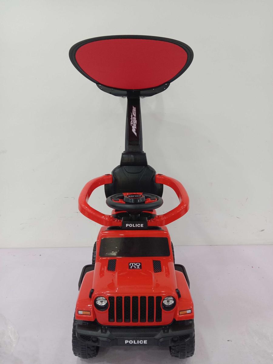 Продуктът е предназначен за деца на възраст над 24 месеца (над 2 години), като теглото на детето не трябва да надвишава 23 кг. Детската пластмасова кола за яздене е с дизайн, който допринася за развитието на моториката и баланса на детето. Тя е със сваляеми дръжка за родителски контрол и сенник, сваляем преден предпазен борд и поставка за крачета за по - малки деца, удобни облегалка и седалка. Върху волана са разположени бутони за различни забавни мелодии. Музикалните функции се активират чрез батерии 3 x АА 1.5V батерии (не са включени).