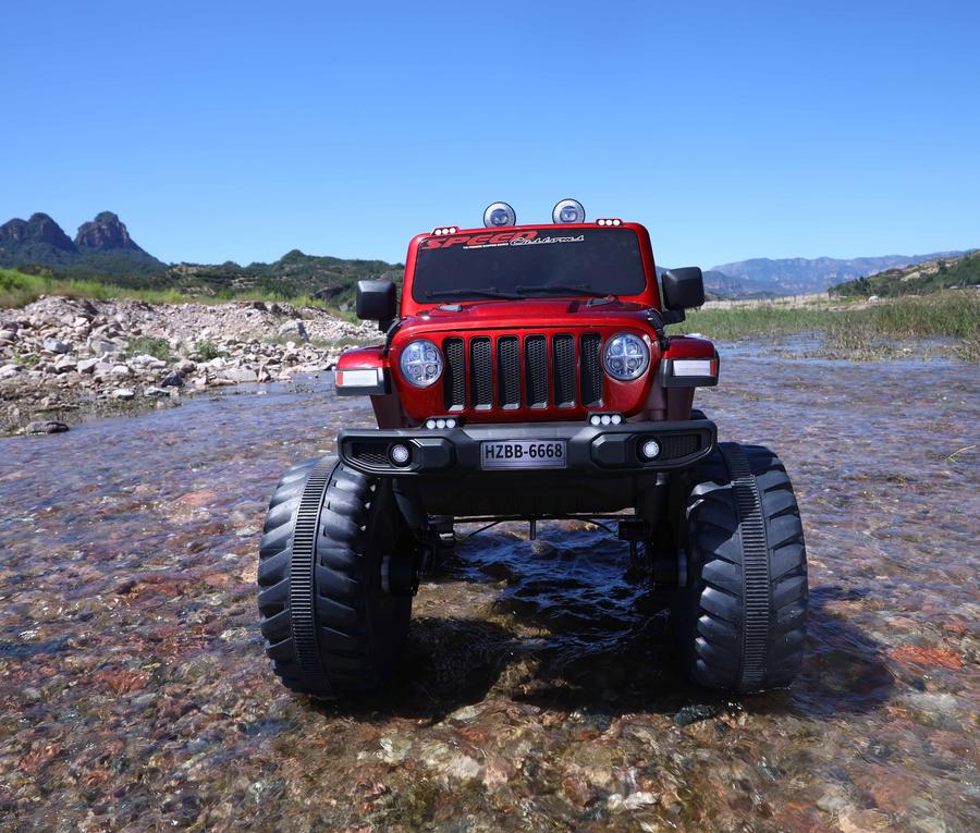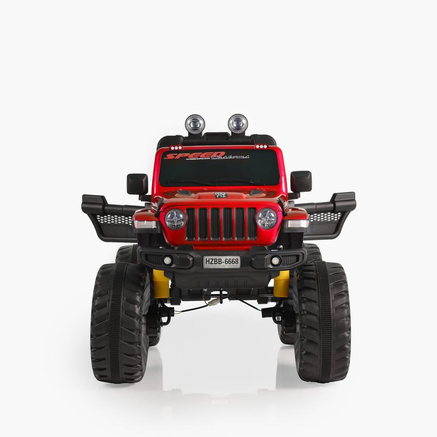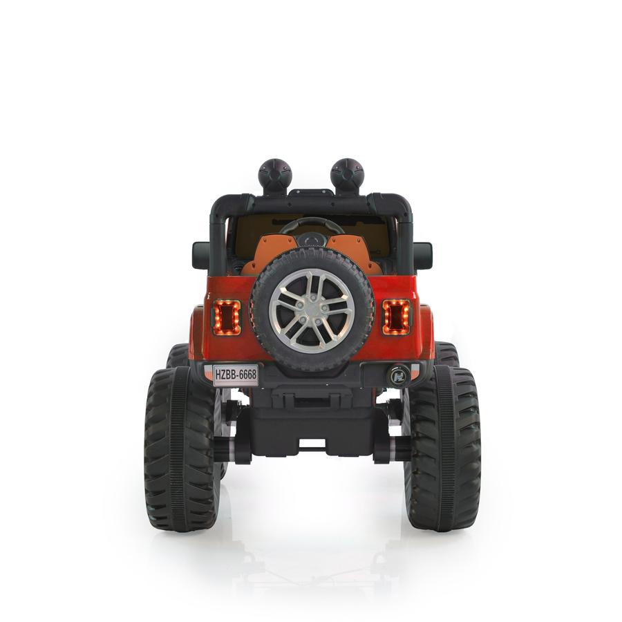 За деца над 3 години с тегло до 50 кг. Батерия - 1*12V/7Ah; Четири мотора; Пластмасови гуми; 2.4G Дистанционно Управление; Предни и задни светлини; ON/ OFF бутон; Музикален плейър с USB, MP3 извод, Музикални функции; 3 скорости - висока, средна и ниска - контролират се само от Дистанционното Управление; Предпазен колан през кръста; Отварящи се врати; Размер на продукта: 118 x 80 x 92 cm.
