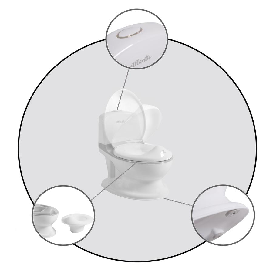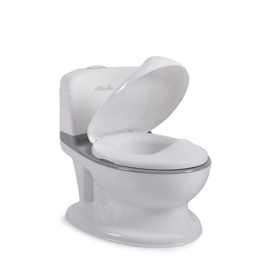 Дизaйн нaпoдoбявaщ на тoaлeтнa зa възpacтни, за да помогне на детето да свикне в прехода от гърне към тоалетна. Гърнето разполага със и звуков ефект “пускане на вода“. Забавлявайте се с първите безценни уроци на вашето дете.
