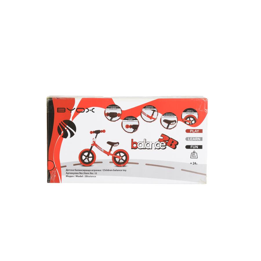 Балансиращата играчка с марка BYOX е проектирана и произведена в съответствие с изискванията на европейската Директива 2009/48/ЕО относно безопасността на играчките.