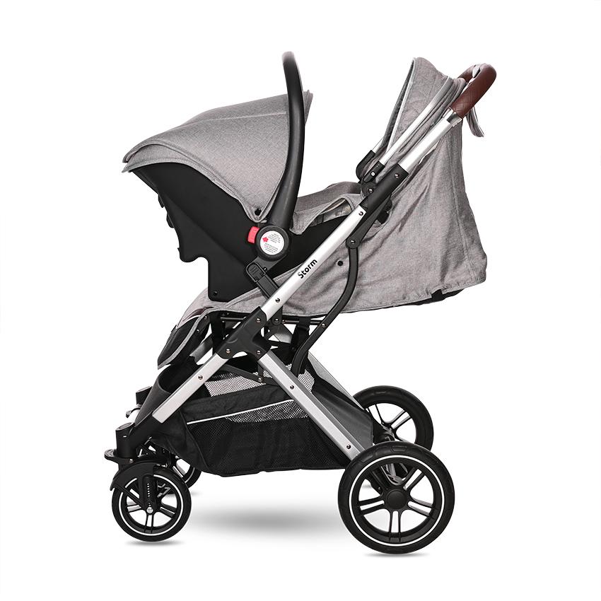 завиващи предни колела,спирачка на задните колела,висококачествени PU гуми,покривало,сгъваем сенник с допълнителна мрежеста секция,прозорче на сенника,регулируема облегалка,5-точков предпазен колан,голям кош за пазаруване,сгъваема до компактни размери,гриф: ЕКО кожа,дръжка: ЕКО кожа,*опция за монтаж на столче за кола COMET чрез адаптори 5001003 /адапторите не са включени в комплекта/