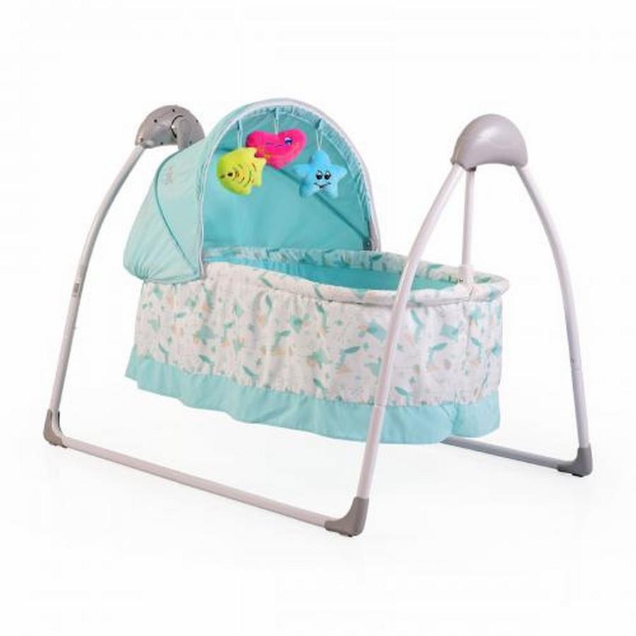 Детско кошче - люлка.Подходящо за деца от 0 до 6 месеца с тегло до 9 кг.С мека възглавница и мрежа против комари с цип.Забавни играчки. Пет скорости на люлеене.Дванадесет мелодии .Бутон за регулиране на звука. Три позиции за сгъване на сенника. Таймер за нагласяне времето на люлеене съответно за 15, 30 или 60 минути.Размер на коша ширина-50 cm, дължина-91 cm, дълбочина-25 cm.