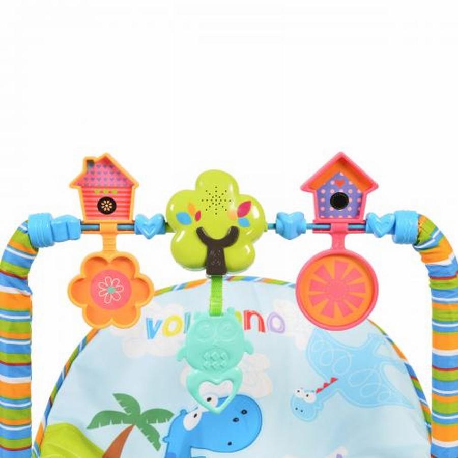 Този продукт представлява детски шезлонг, предназначен за новородени, по-големи бебета и прохождащи деца. Той може да се използва освен като шезлонг с успокояваща вибрираща функция, но и като стол за по - големи деца. Препоръчително е наклонената позиция на гръбчето да се използва за деца до около 9 кг. По - изправената позиция на облегалката е подходяща за деца над 9 кг. Използвайте я само, когато вашето дете вече е развило достатъчен контрол на горната част на тялото и може да стои само в седнало положение без да се накланя напред. Към продукта има включени 3 играчки, една от които е с музикални фукнции. Шезлонгът е изработен от нетоксични материали.