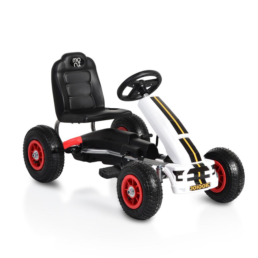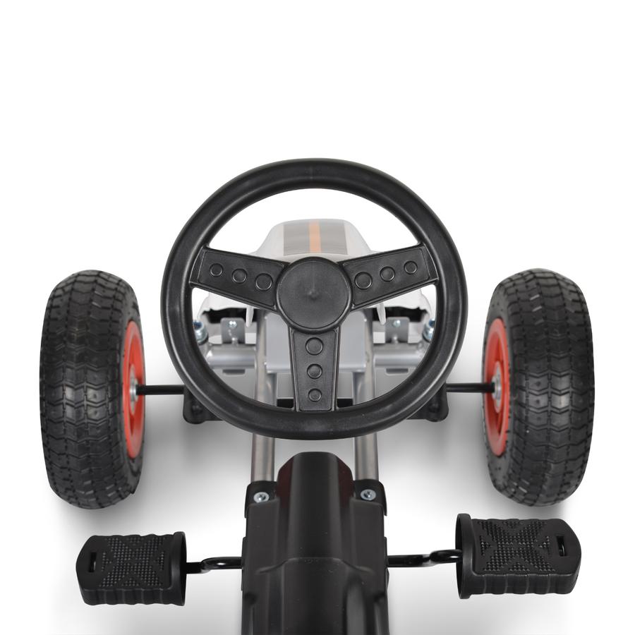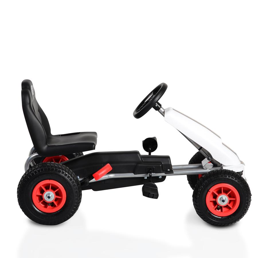 Подходящ за деца на възраст над 36 месеца с максимално тегло до 30 кг. Колата се движи напред и назад чрез педалите. Картингът е със задна спирачка и надуваеми гуми.