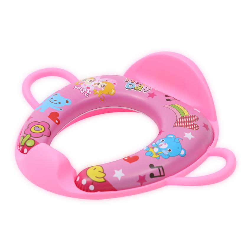 мека и удобна тоалетна седалка за деца,лесна за пренасяне,отделяща се мека възглавничка за лесно почистване,практични странични дръжки за хващане,пластмасов протектор за предпазване от измокряне,пластмасова комфортна облегалка